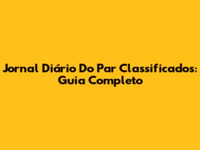 Jornal Diário Do Par Classificados: Guia Completo